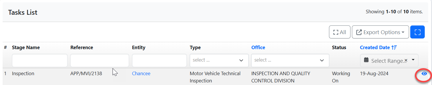 From the list of task click on the intended one or click on "eye" like symbol to open the task.