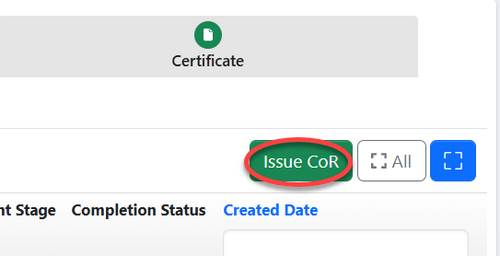 Upon successful clicking "CoR" user will see the button to initiate the issuing of CoR as shown below, click on the button to proceed.