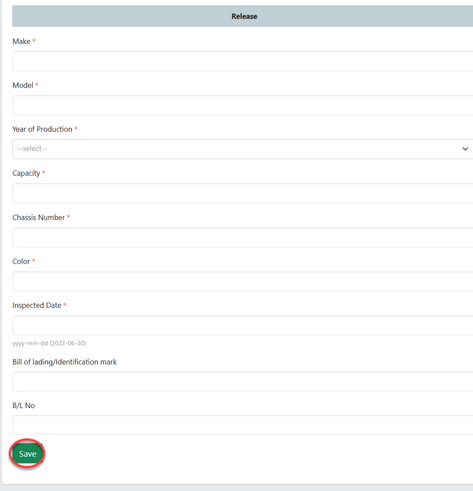 User will be landed on the page with the inspection checklist, fill in the required details on the form shown below, then click "Save" to save data.