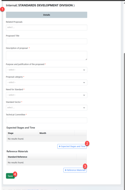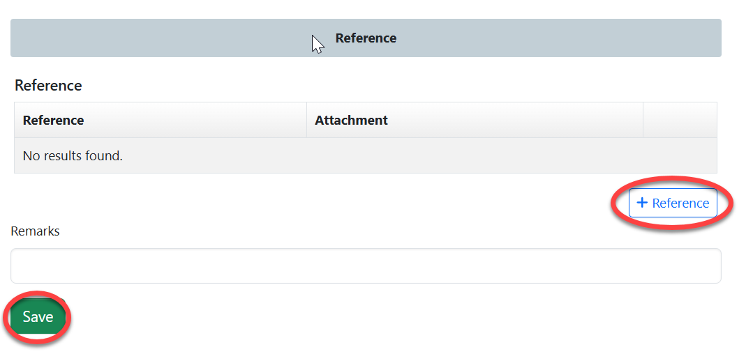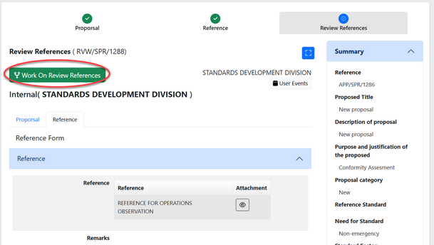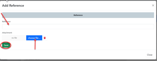 On the appeared window click on "Reference" to add reference as requested on the application details on the summary. Add all required standard references and attachments if any then click "Save", See figure and below.