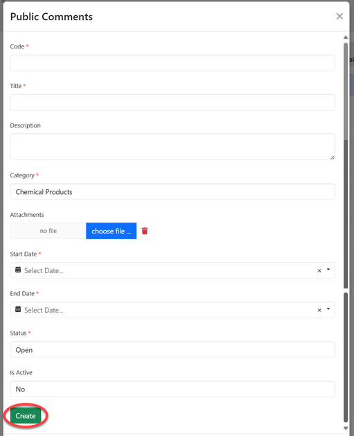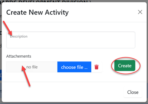 Fill in description and attachment if any as shown on the figure below and click "Create" to save. Then close.