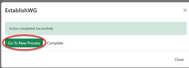 Click "Go To New Process" to start a process for creating working group. see figure below.
