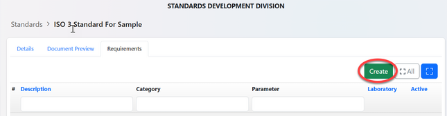 On the window appeared click on "Create" to create a new requirement See figure below.