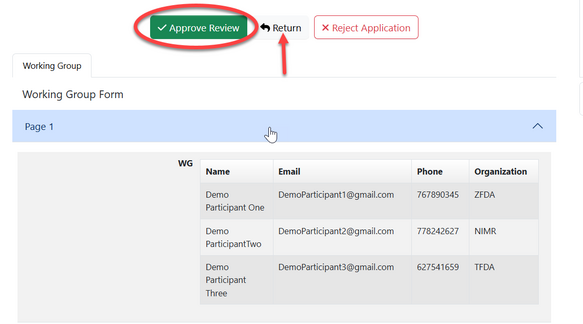 Click on "Submit Working Group" to submit the group or edit form to make some edits, save and submit. See figure below.