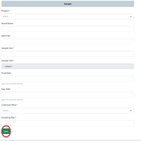 Click on "Submit Sample" to submit sample register or click "Edit Form" to make changes on the form, save then submit. see figure below.