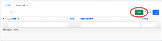 When the user clicks on 'Observations,' they will be redirected to the observation window, where they can add an observation by clicking "Add" see figure below.