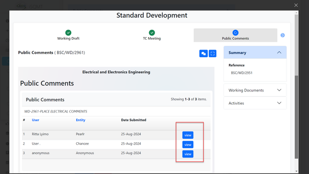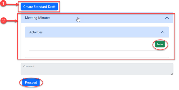 Then click on "Proceed" to add any other comment obtained through the working draft processes. (See figure above)