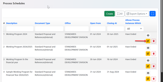 Upon successfully created the program, Open it by clicking on the intended one or click on the "eye" like symbol from the list of process schedules. See figure below