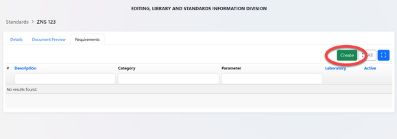Fill the details of the standard as required, insert or drag and drop the standard document if any and upload, then click "Create" to save and create the standard.( See figure 2.3 below)