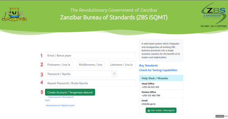 Users without account will be required to register in to the system by clicking the “New account/ Register here/ Akaunti mpya? Jisajili hapa”