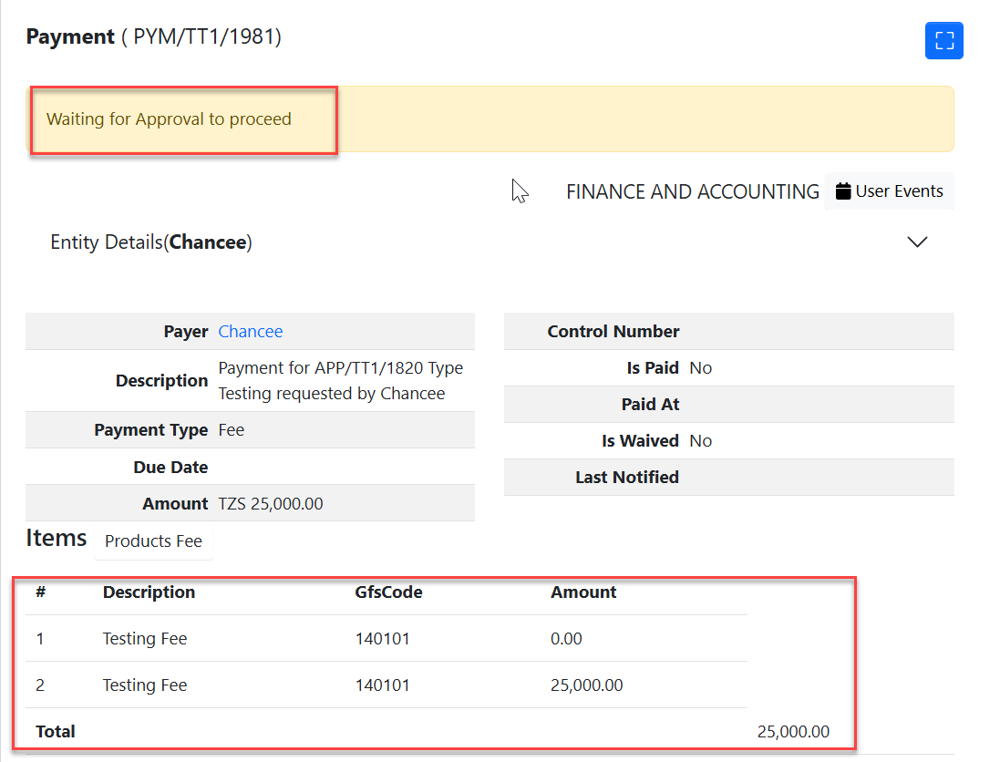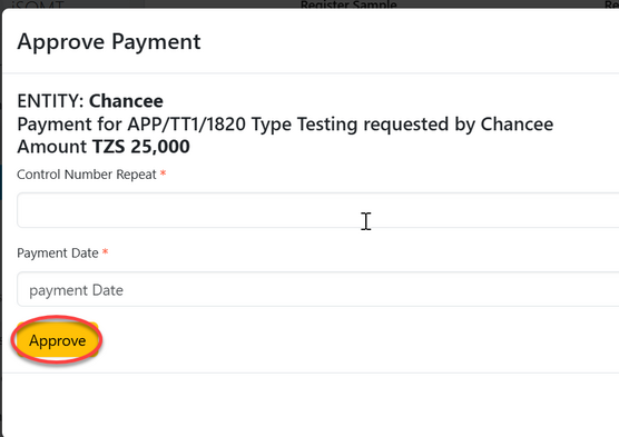 Fill in the required details of the control number and payment date then click "Approve" to save and approve payment. See figure below.