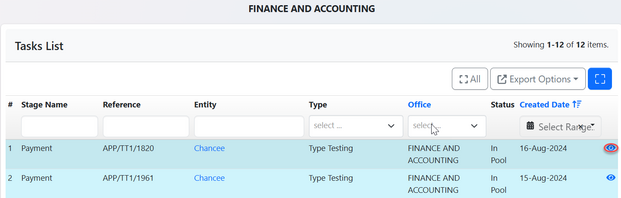 On the list of tasks click the intended one or click "eye" like symbol to open it.